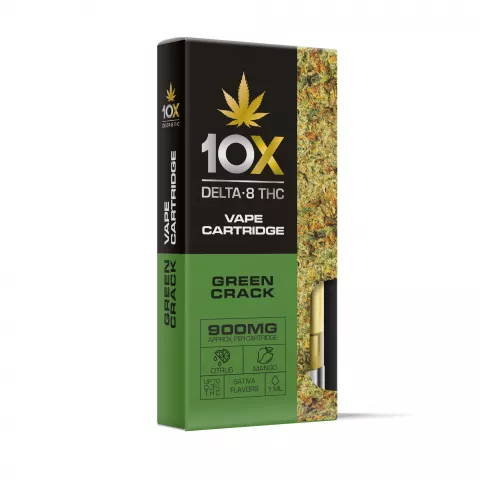 Feed the wild side of your buzz with all-new 10X Delta-8 vape cartridges. It’s a quick, easy, on-the-go way to enjoy your favorite buzz-worthy cannabinoid. And with new 10X Delta-8 Green Crack vape cartridges, you’ll experience a potent sativa strain that leaves you feeling upbeat and euphoric all day long.