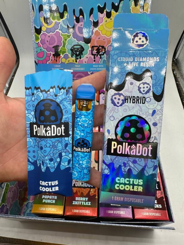 - PolkaDot Dispo Cactus Cooler – A Refreshing Option; Indulge in the crisp and invigorating taste of PolkaDot Dispo Cactus Cooler, a refreshing option that provides a burst of flavor with every puff. Perfect for those warm summer days or anytime you crave a revitalizing vaping experience.