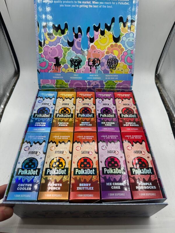 - Live Resin in PolkaDot Disposable Vapes; Experience the smooth and potent effects of live resin in PolkaDot disposable vapes. These Polka Dot disposable vape deliver a high-quality vaping experience with the added benefit of live resin, making them a popular choice among vaping enthusiasts.
